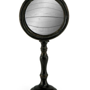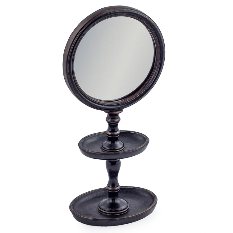 Stylish, elegant and beautiful this black framed mirror on stand is an unusual piece that would easily double up as a piece of decorative art. Boasting a small round mirrored centre on a stand with 2 round trays this item is certainly one to turn the heads.