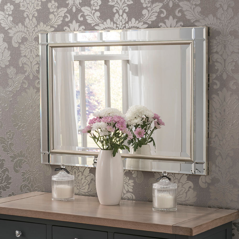 Whether you want to hang a mirror over a console table, sofa or fireplace this stunning ‘Elche’ mirror ticks all the boxes. Hung in the landscape position to catch the light, the slim glass frame with its silver finish makes this the perfect mirror for so many rooms or positions.