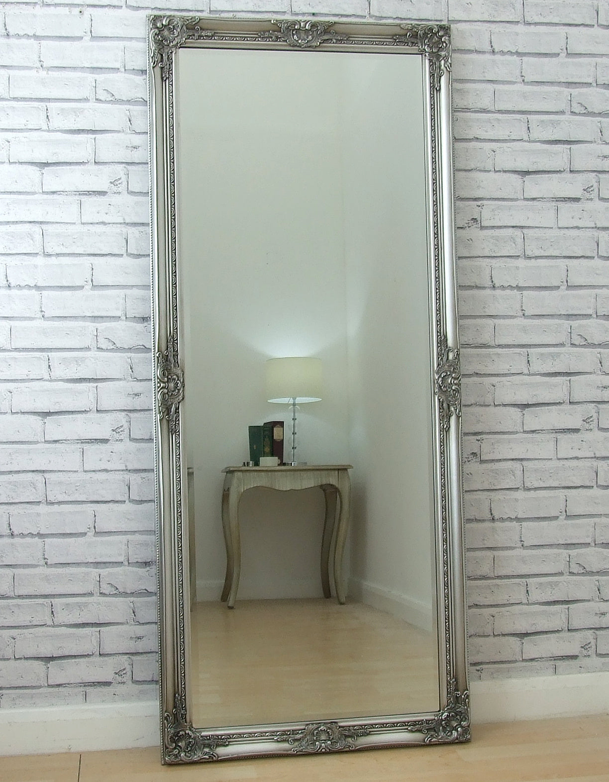Simple stunning Silver leaner mirror with a charming ornate frame. This mirror will instantly revive any sparse living space adding beauty and elegance. Perfectly suited to a number of different settings from French to traditional and modern vintage this silver mirror offers a versatile design. The timeless antique silver finish exudes sophistication and glamour offering an opulent feel to your living space.