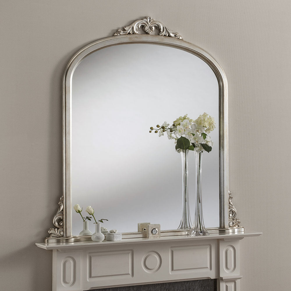 This extra large traditional silver overmantle wall mirror is hand made in London to the very highest standards. This timeless design will compliment your existing traditional interior, whilst also able to add a touch of comfort to a more modern surrounding
