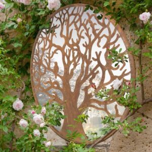Exclusive Mirrors is delighted to offer for sale this very authentic, rusted aged metal garden wall mirror with a Stag Deer tree design. This item is a real statement piece and it would be a true focal point for the garden – it will truly impress any passer-by. This mirror measures 3ft3 or 100cm.