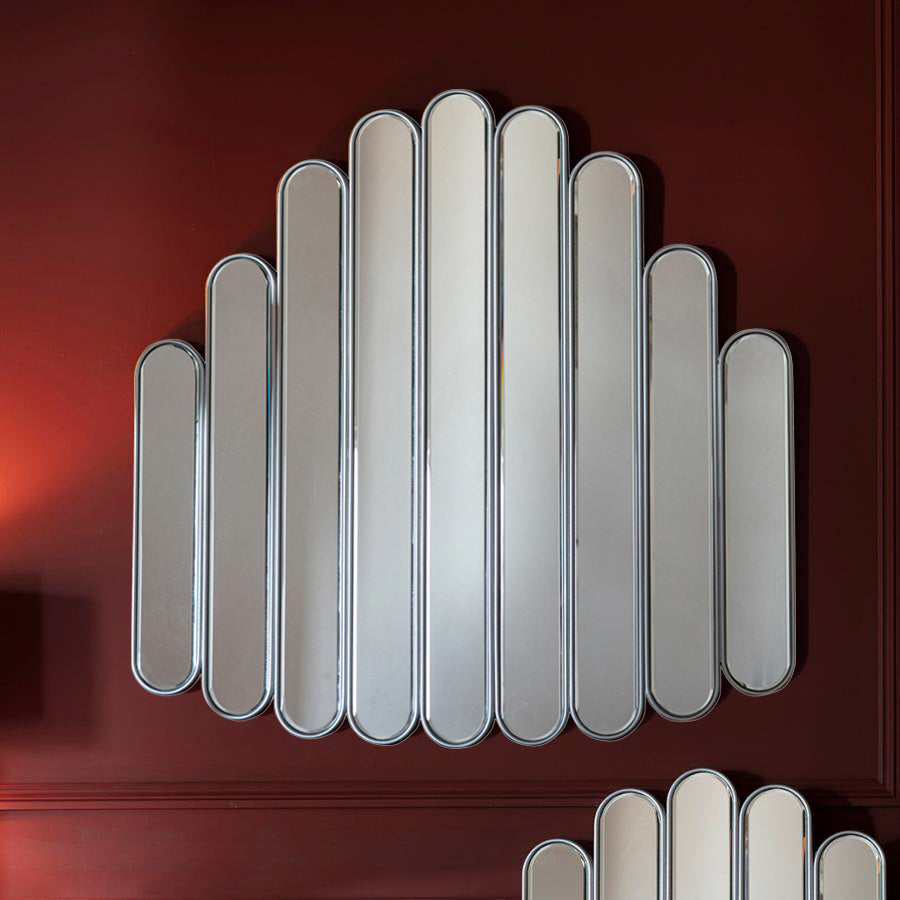 This stunning unique mirror offers a stylish contemporary design. This unique mirror will grace any wall in your home beautifully. The mirror offers a versatile design and will blend into any current home décor either contemporary or traditional. The mirror is made up of individual oblong mirrors combined together to create a dramatic look set in a shining Silver outer frame.
